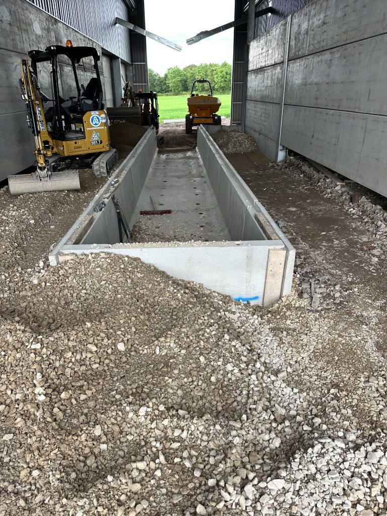 Flooring & Drainage: The internal and external areas received a new 200mm-thick concrete floor. We levelled and power-floated the internal surface, while externally, we applied a brush and tamper finish to suit agricultural use. Nuthatch installed new manholes and drainage. And connected to the existing farm drainage infrastructure.